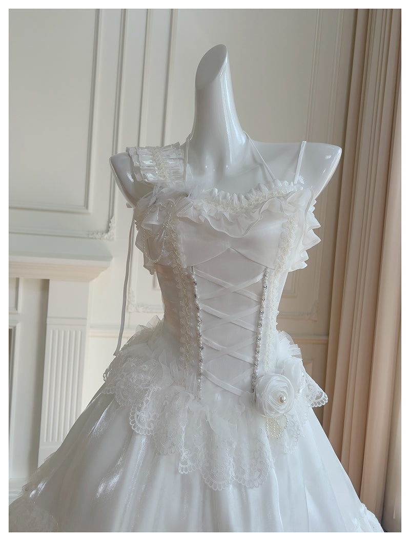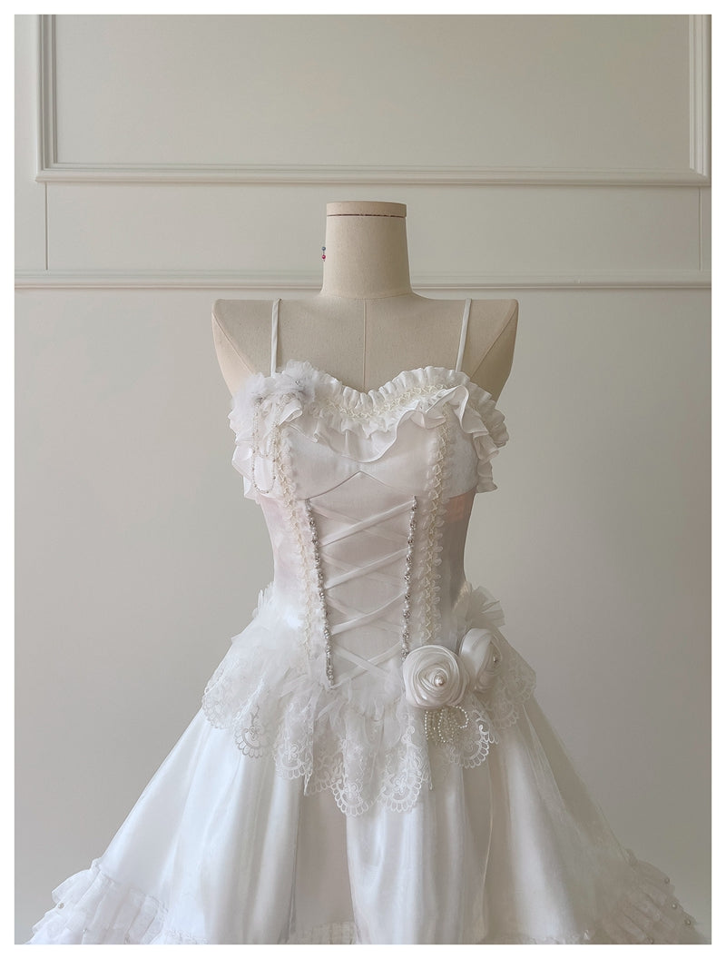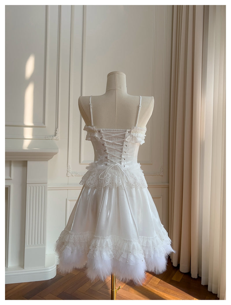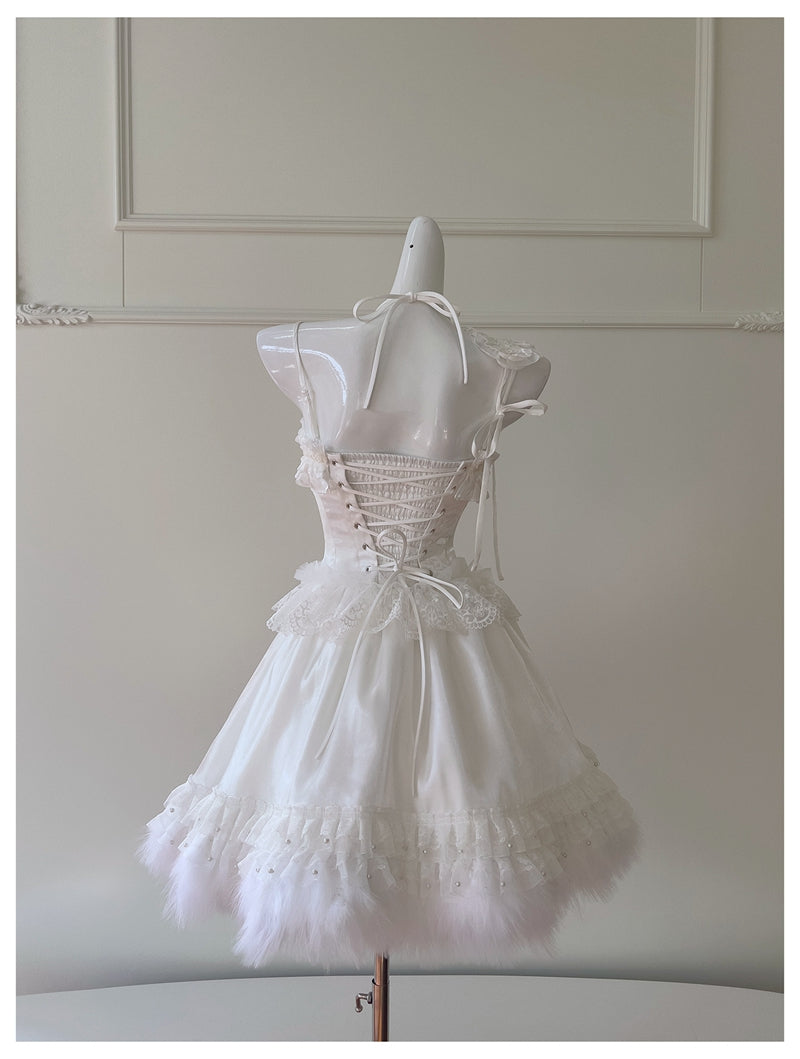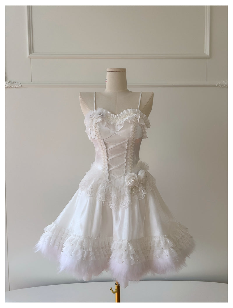 Pretty Ball Gown Spaghetti Straps Corset Back White Grad Dress Inspo Short Mini Formal 8th Grade Homecoming Dresses High School Hoco Court Dress Graduation Dress Hoco Outfits DH1912