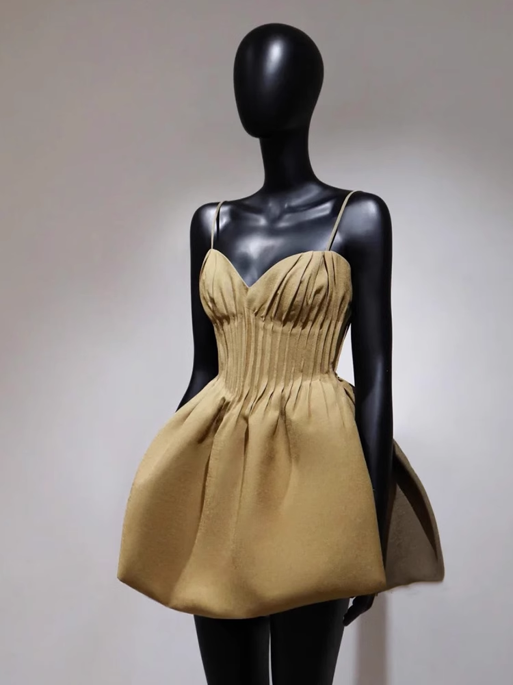 Pretty Ball Gown Spaghetti Straps Gold Mini Short Homecoming Dress Summer Middle School Formal 8th Grade Hoco Dresses Summer Homecoming Outfits DH613