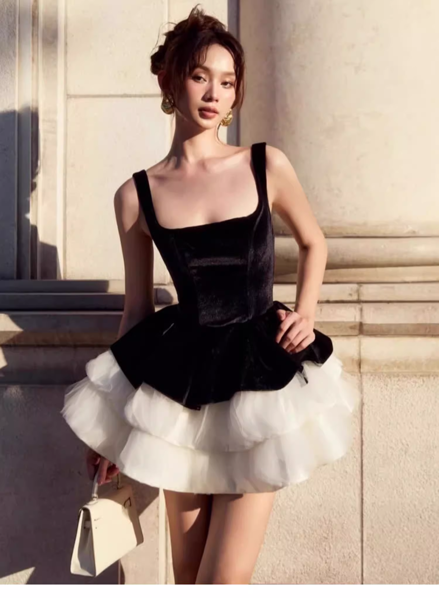 Pretty Ball Gown Square Neck Black Velvet Short Formal 8th Grade Homecoming Dresses Summer Middle School Hoco Dress Homecoming Outfits DH643