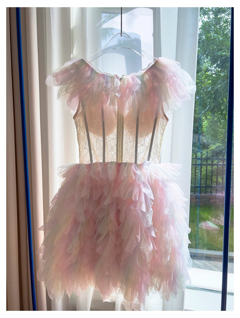 Pretty Ball Gown V Neck Pink Grad Dress Inspo Short Mini Formal 8th Grade Homecoming Dresses High School Hoco Court Dress Graduation Dress Cocktail Birthday Outfits DH1914