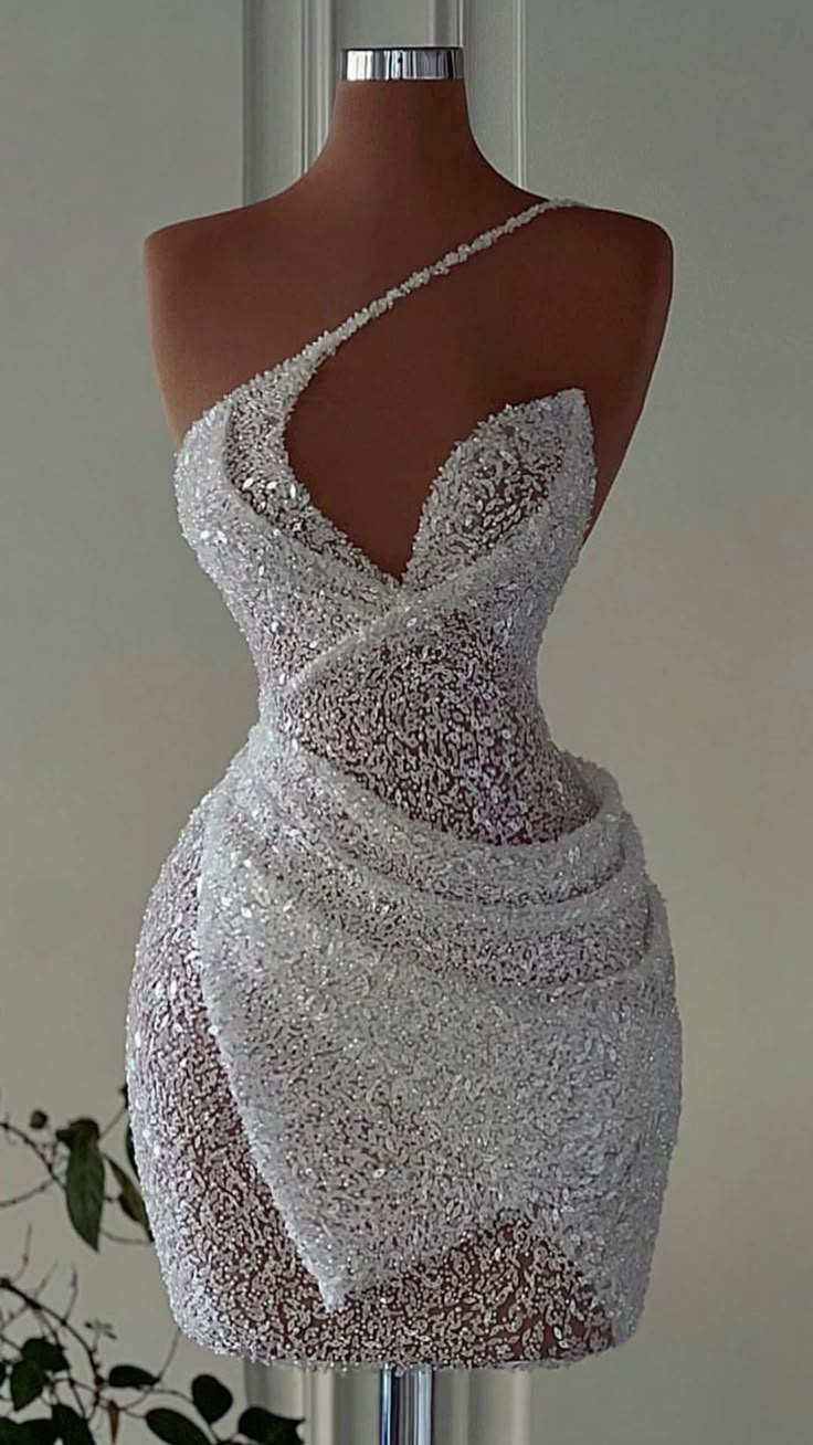 Pretty Sheath One Shoulder White Sequin Sleeveless Short Formal 8th Grade Homecoming Dresses Summer Middle School Hoco Dress Homecoming Outfits DH453