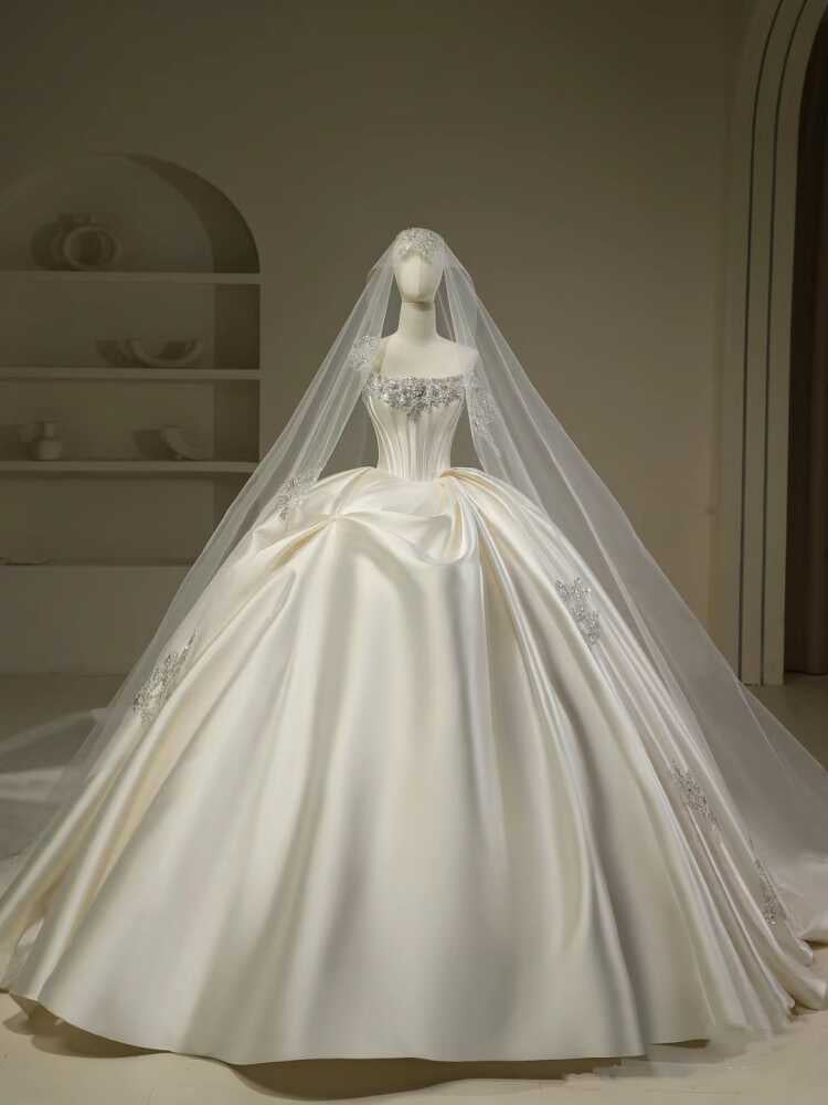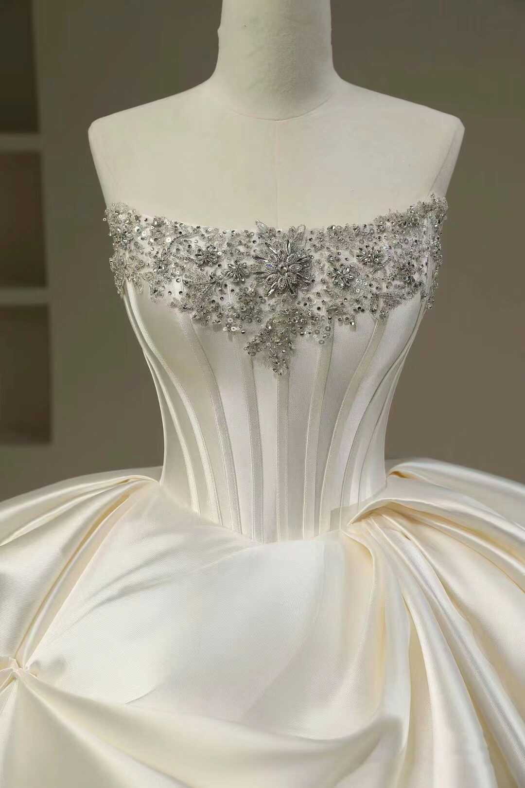 Pretty Wedding Dress Ball Gown Strapless White Long Satin Wedding Dresses Bridal Gowns Brides Gown DH111