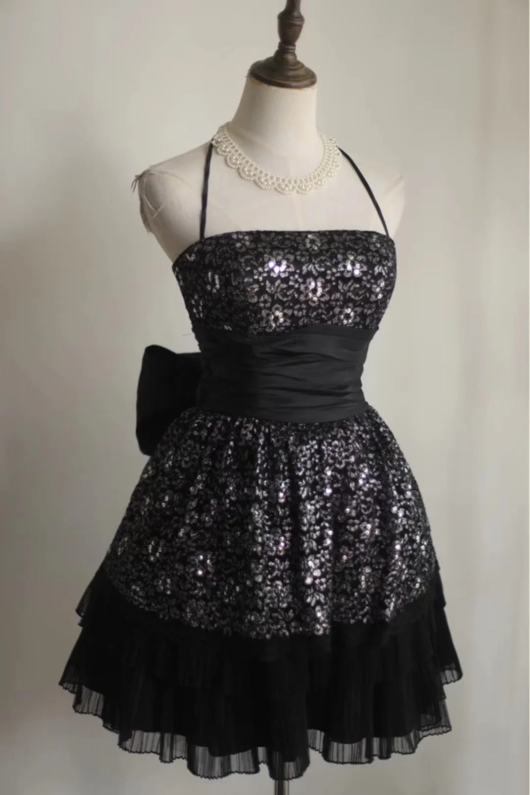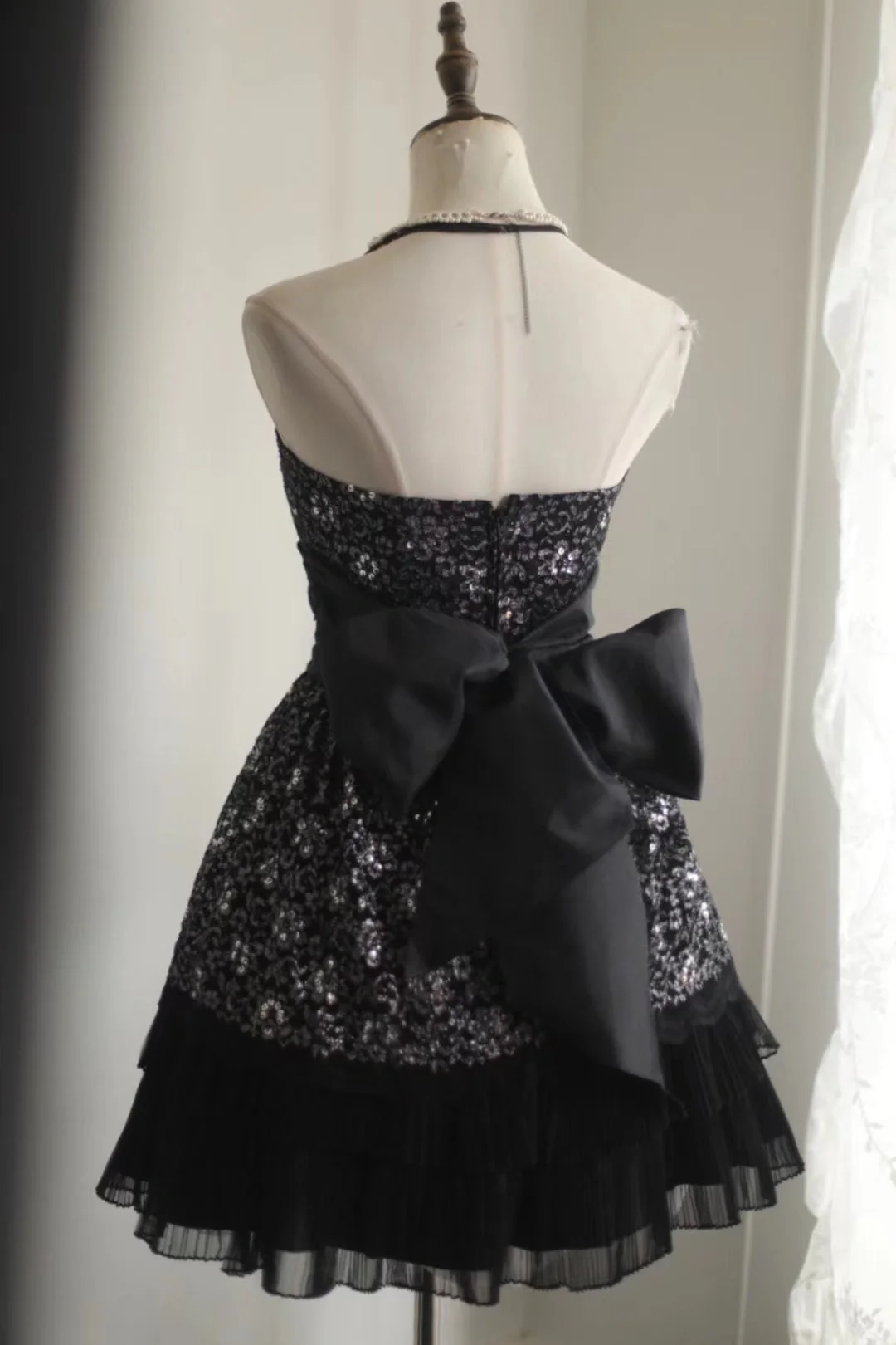 Retro A Line Halter Sequin Black Mini Short Formal 8th Grade Homecoming Dresses Summer Middle School Hoco Dress 18th Birthday Outfits DH1306