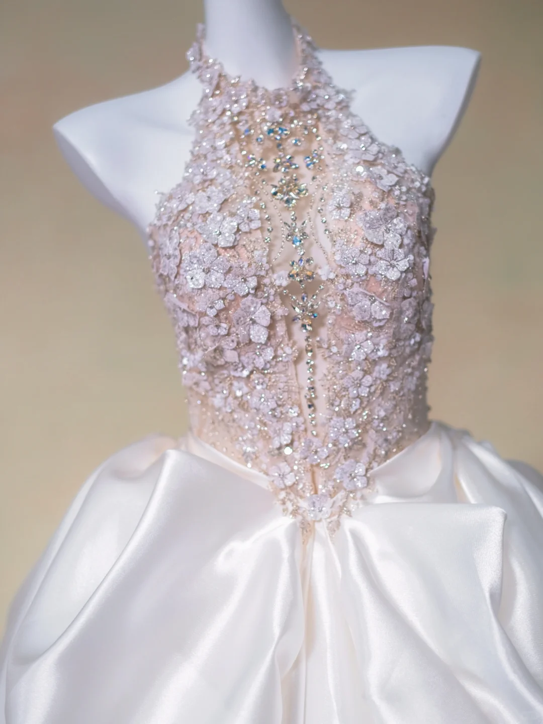Romantic Bridal Gown Ball Gown High Neck White Lace Floral Wedding Dresses Minimalist Bridal Gowns DP1977