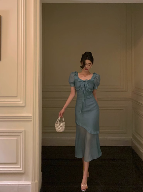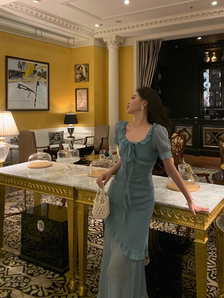 Sexy Mermaid Square Chiffon Blue 21st Birthday Dress Party Gown Birthday Outfits Birthday Dress Ideas For Women DP1881