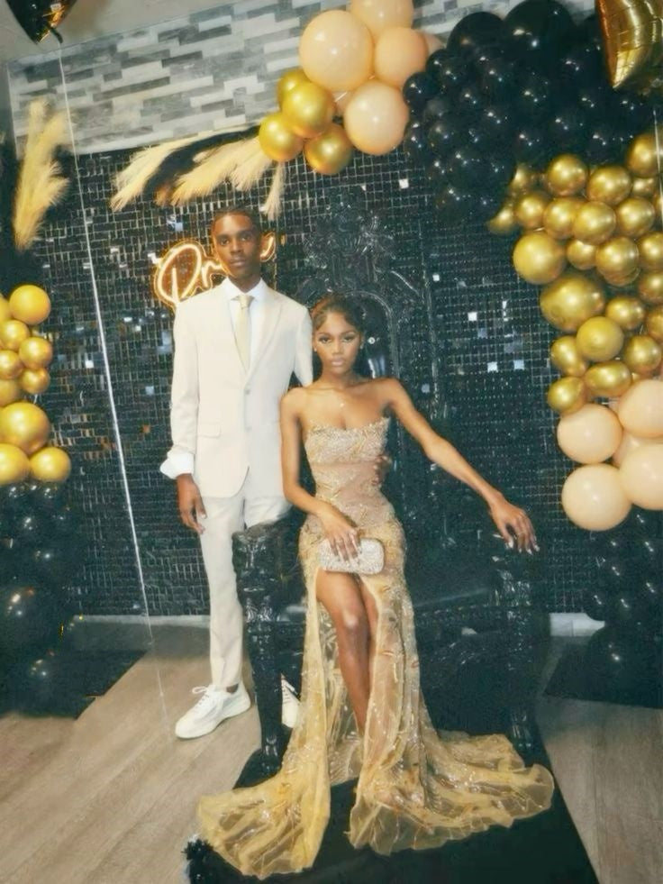 Sexy Mermaid Strapless Gold Sequin Slit Long Birthday Dress Birthday Outfits Graduation Dresses D2621