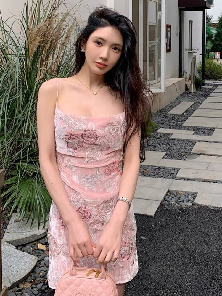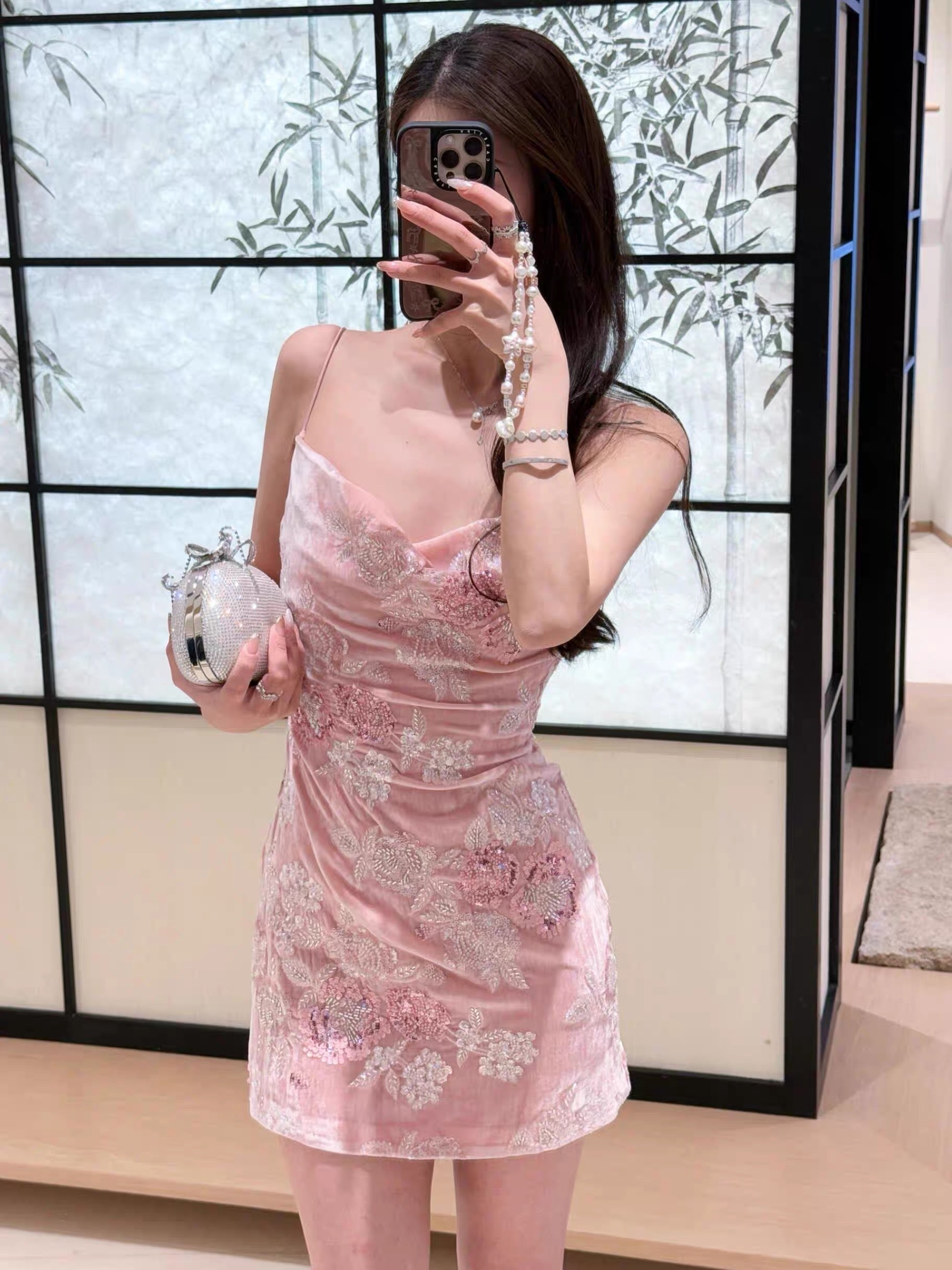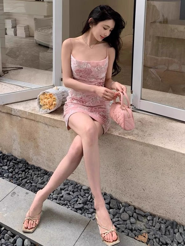 Sexy Sheath Spaghetti Straps Pink Sequin Short Mini Formal 8th Grade Homecoming Dresses Middle School Short Birthday Gowns Graduation Dress Hoco Outfits DH2125