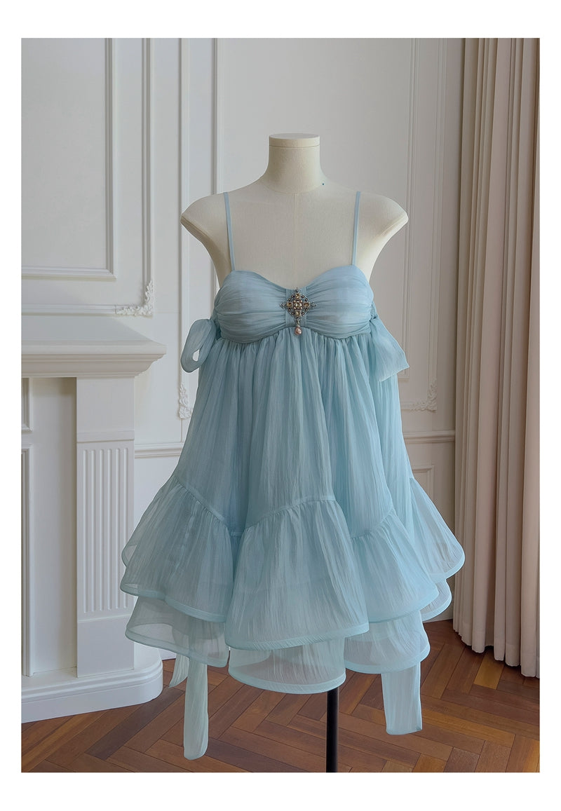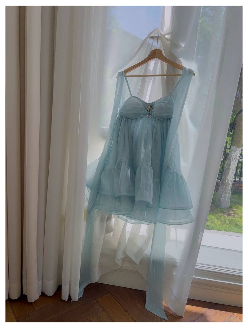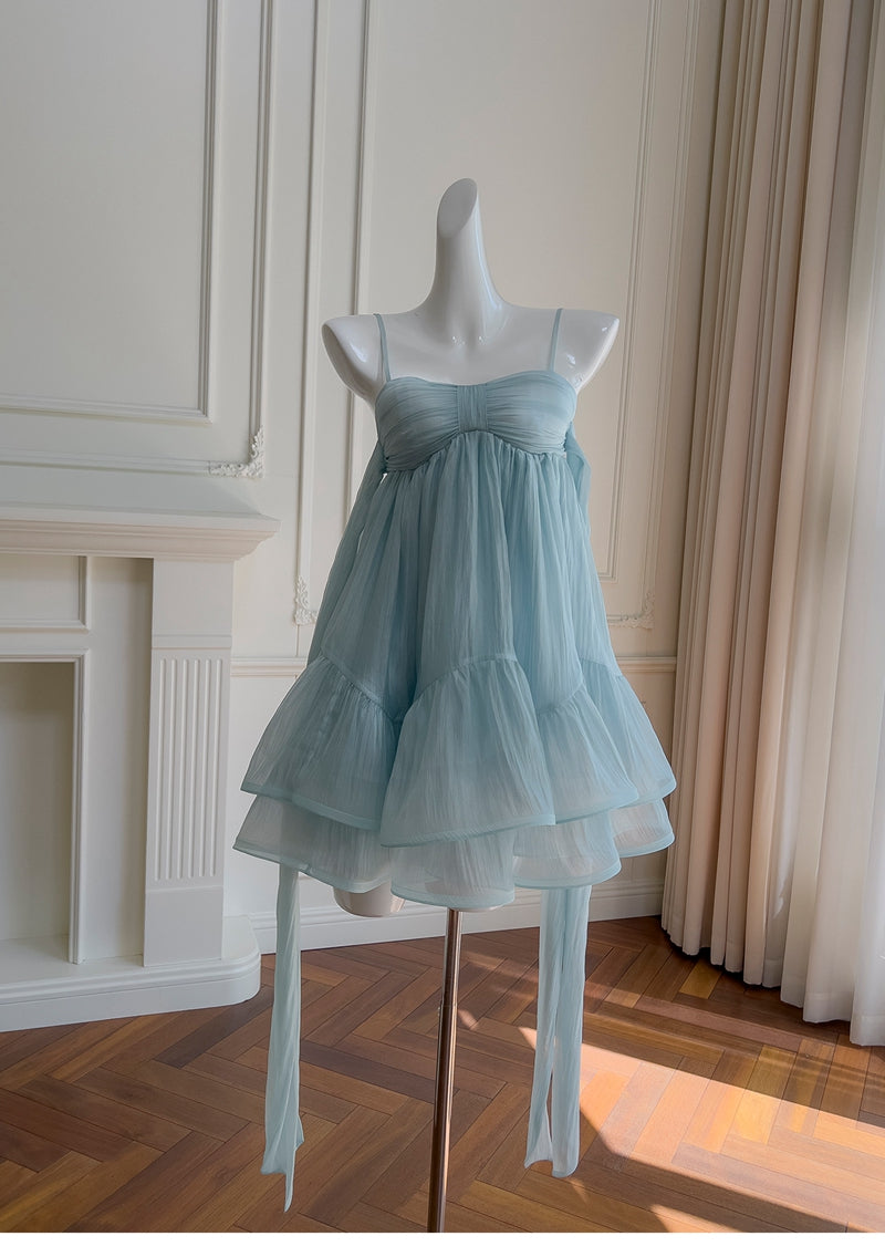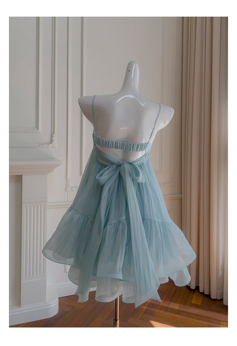 Simple A Line Spaghetti Straps Blue Open Backs Grad Dress Inspo Short Mini Formal 8th Grade Homecoming Dresses High School Hoco Court Dress Graduation Dress Hoco Outfits DH1905
