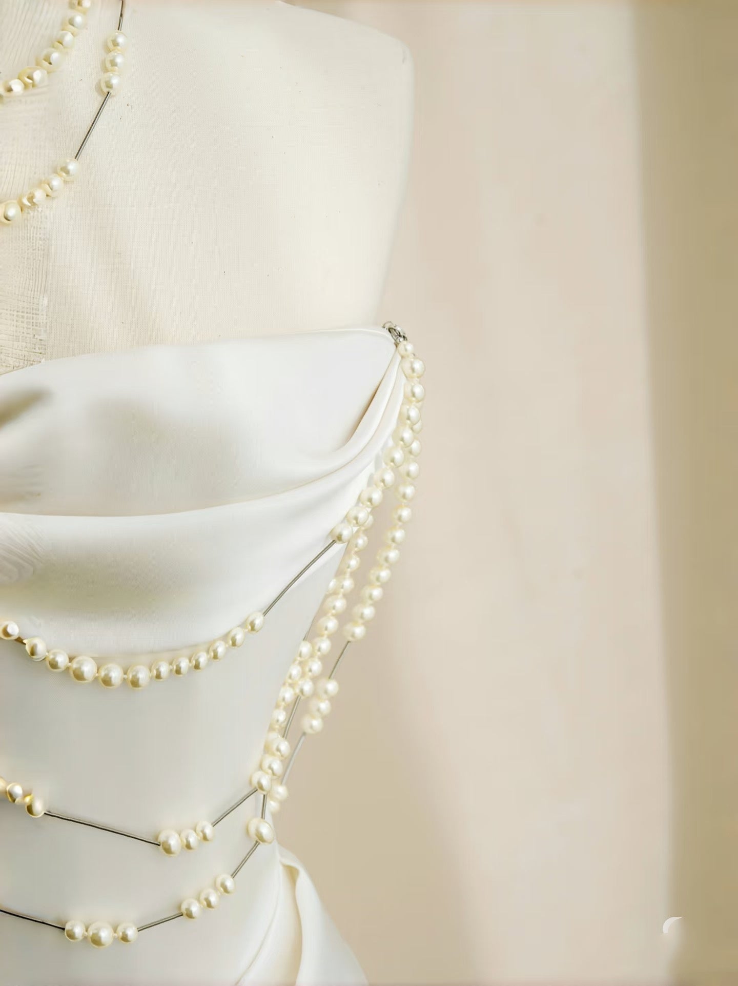 Simple Bridal Gown Sheath Strapless White Satin Floor Length Wedding Dresses Minimalist Bridal Gowns D2732