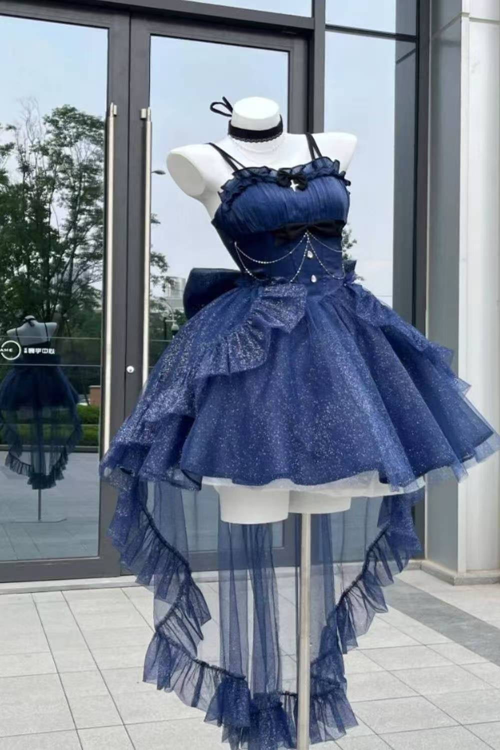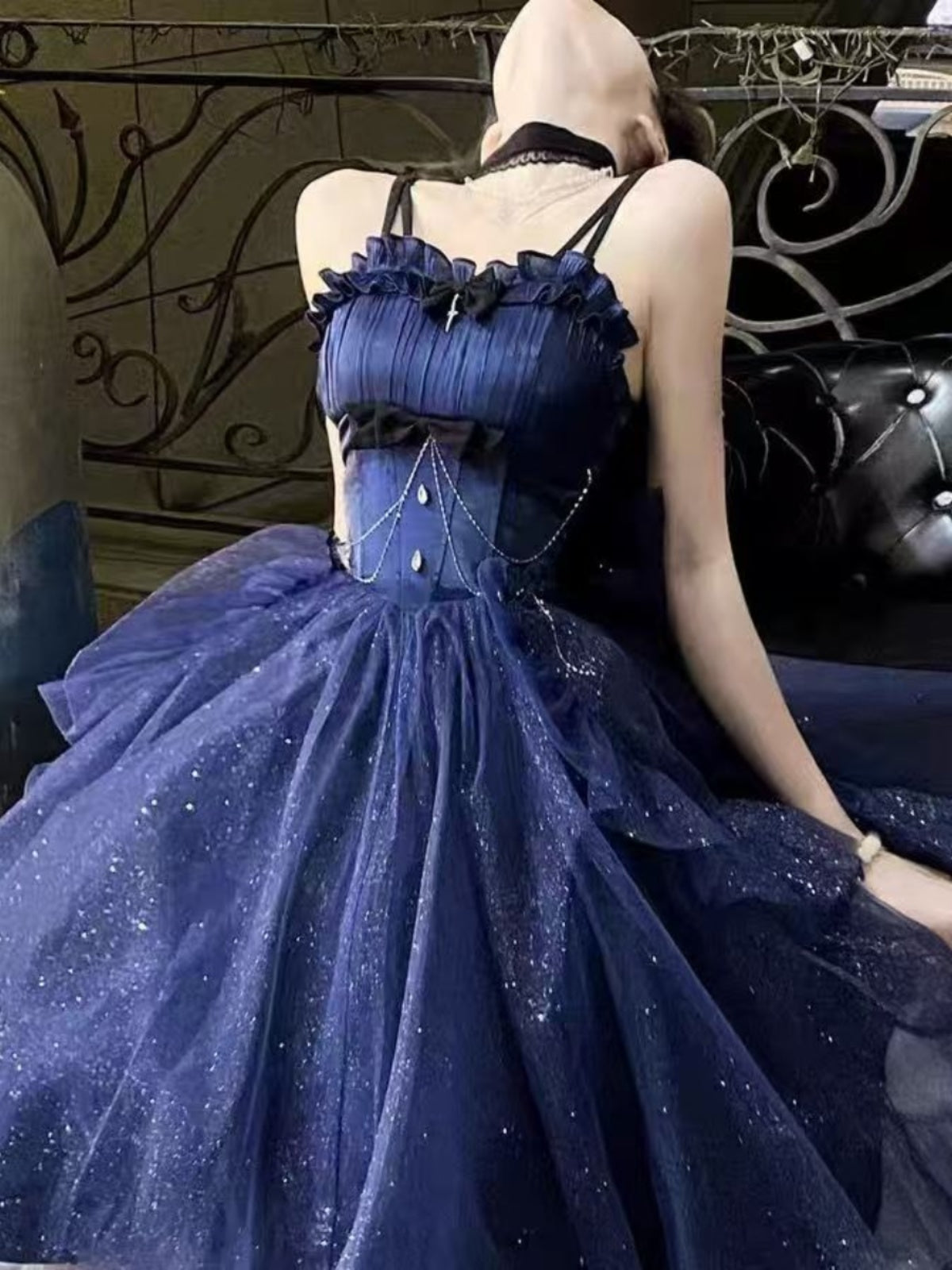 Sweet Ball Gown Spaghetti Straps Tulle Navy Blue Gotica Formal 8th Grade Homecoming Dresses Middle School Lolita Dress Hoco Outfits Lolita Outfit DH1632