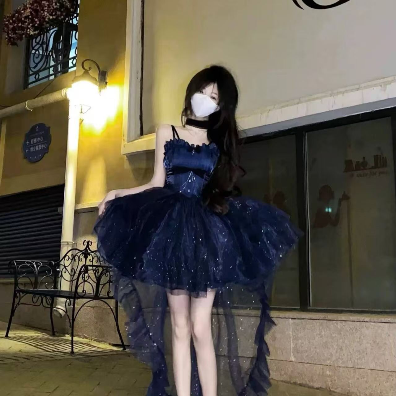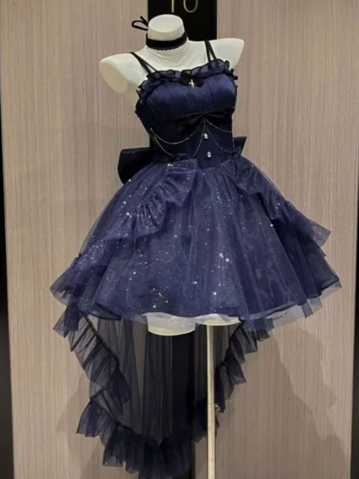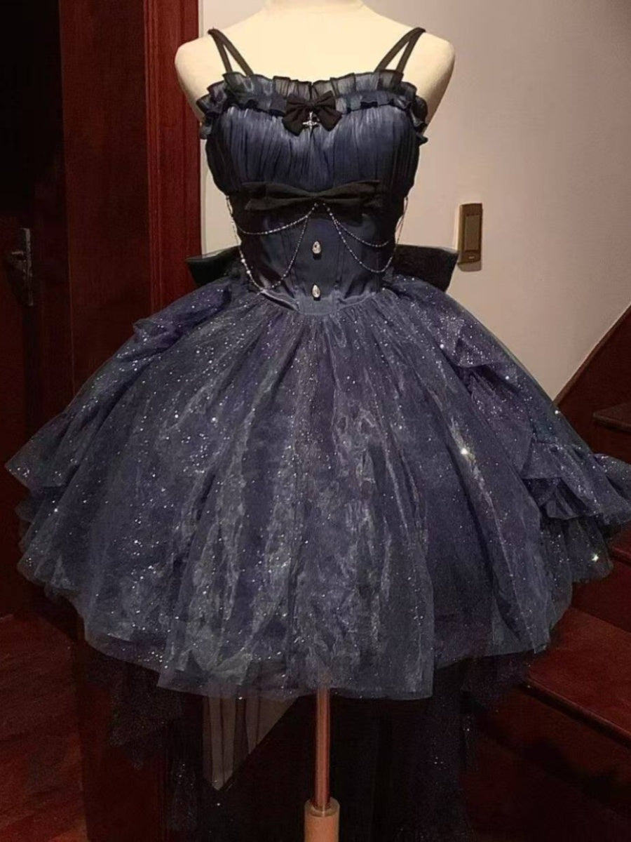 Sweet French Style Ladies Fairy Spaghetti Straps Tulle Navy Blue Gotica Formal 8th Grade Homecoming Dresses Middle School Lolita Dress Hoco Outfits Lolita Outfits DH1650