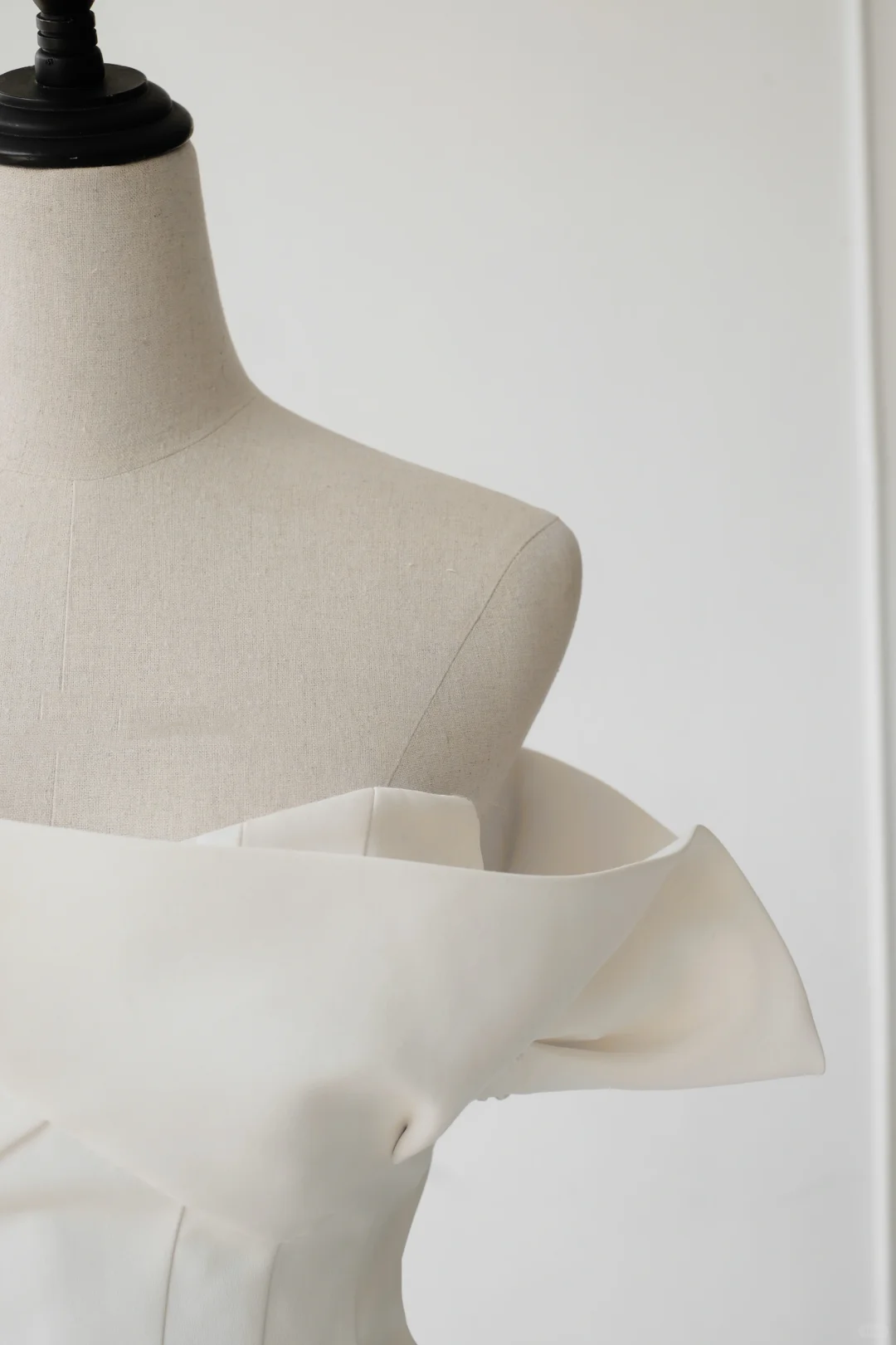 Timeless Bridal Gown Sheath Off The Shoulder Satin Short Sleeves Wedding Dresses Elegant Bridal Gowns DH891