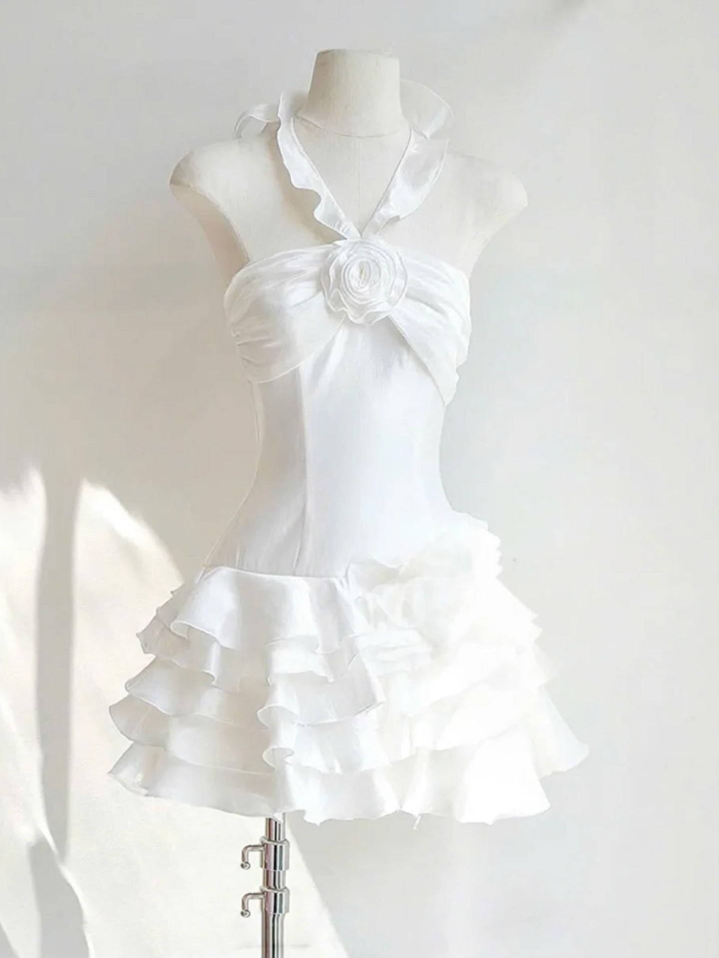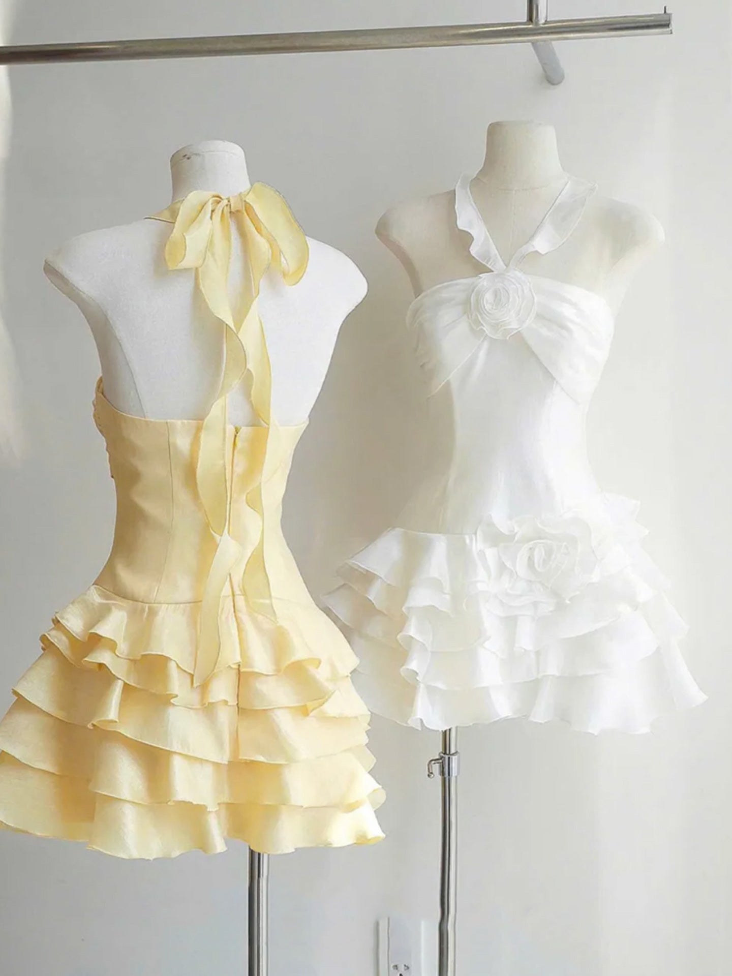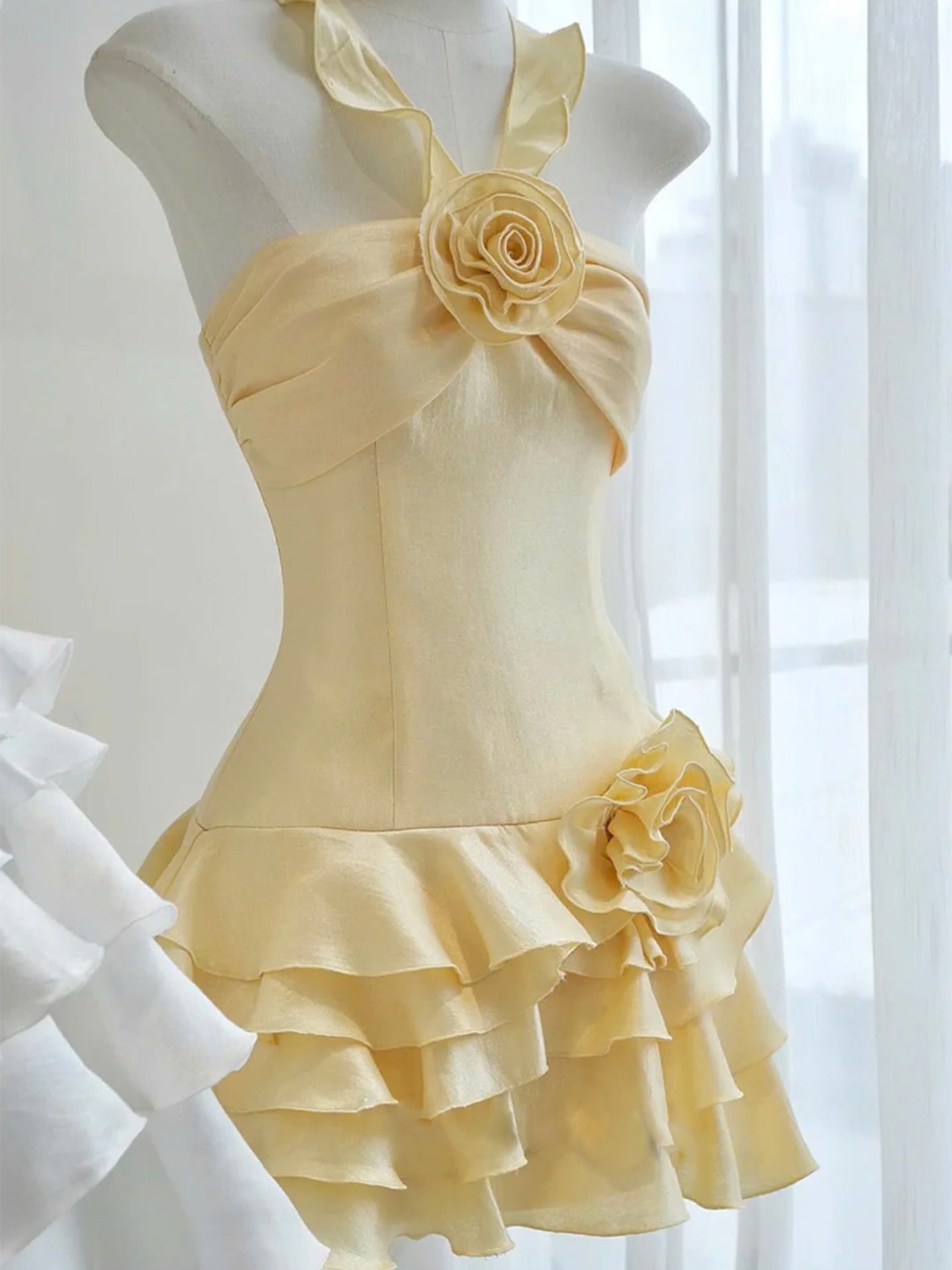 Trendy A Line Halter Yellow Chiffon Mini Short Formal 8th Grade Homecoming Dresses Summer Middle School Hoco Dress Homecoming Outfits DH438