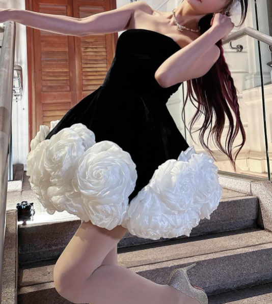 Trendy Ball Gown Strapless Black Velvet Mini Short Formal 7th Grade Homecoming Dresses Middle School Short Prom Dress Hoco Outfits DH1345