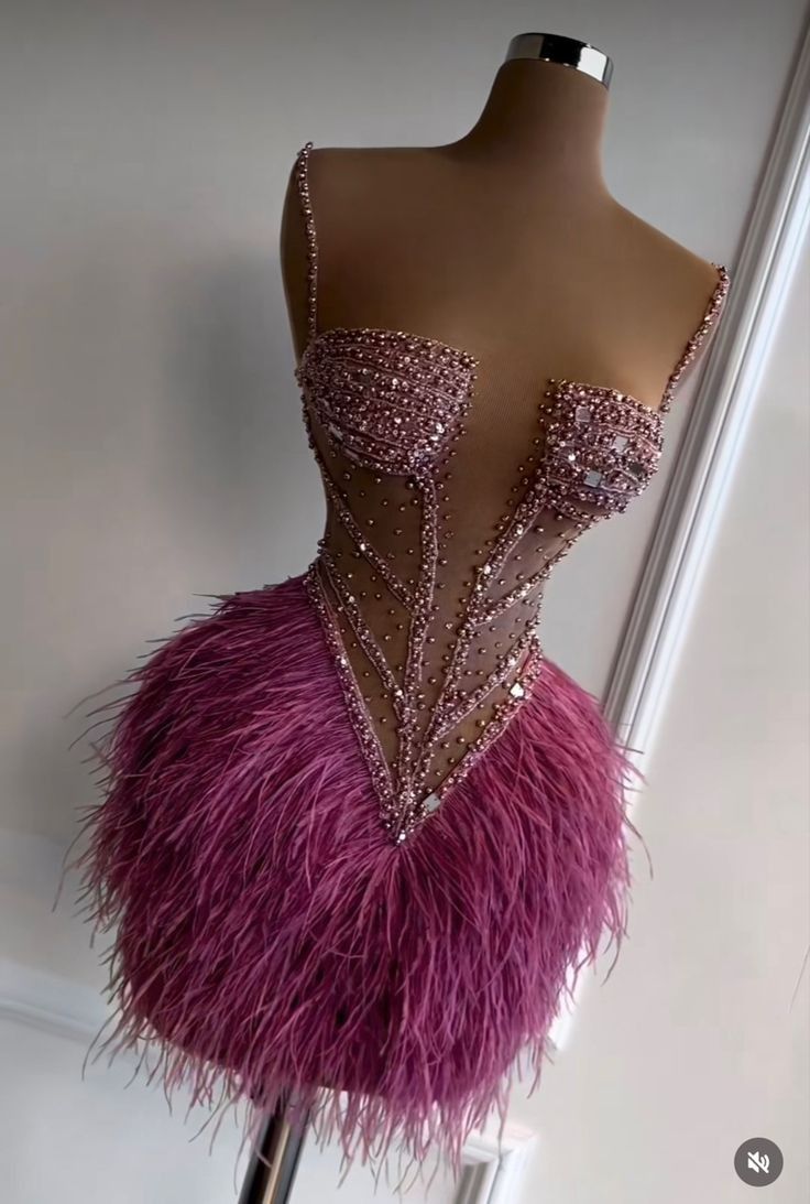 Trendy Sheath Spaghetti Straps Feathers Mini Short Formal 8th Grade Homecoming Dresses Summer Middle School Hoco Dress Homecoming Outfits DH447