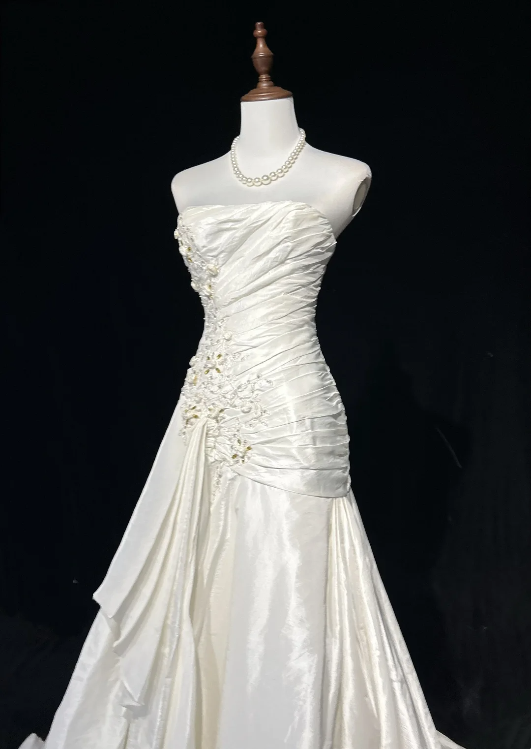 Unique Bridal Gown Mermaid Strapless Lace Sleeveless White 50s Wedding Dresses Modest Bridal Gowns DH1103