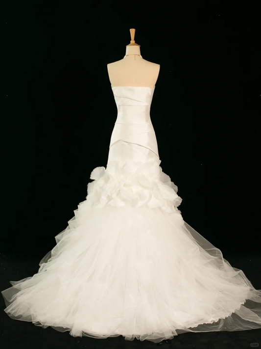Pretty Wedding Dress Mermaid Strapless White Satin Long Vintage Wedding Dresses Bridal Gowns Brides Gown DH347