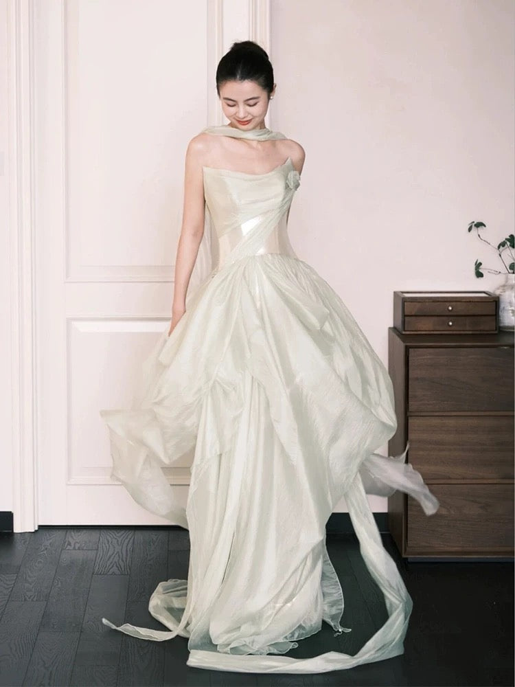 Sexy A line Strapless Light Mint Green Chiffon Sleeveless Prom Dresses Party Dress Summer Birthday Outfits Birthday Dresses W803