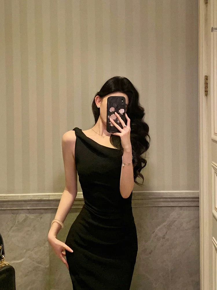 Sexy Sheath One Shoulder Black Sleeveless Prom Dresses Party Dress Summer Birthday Outfits 18th Birthday Dresses W820