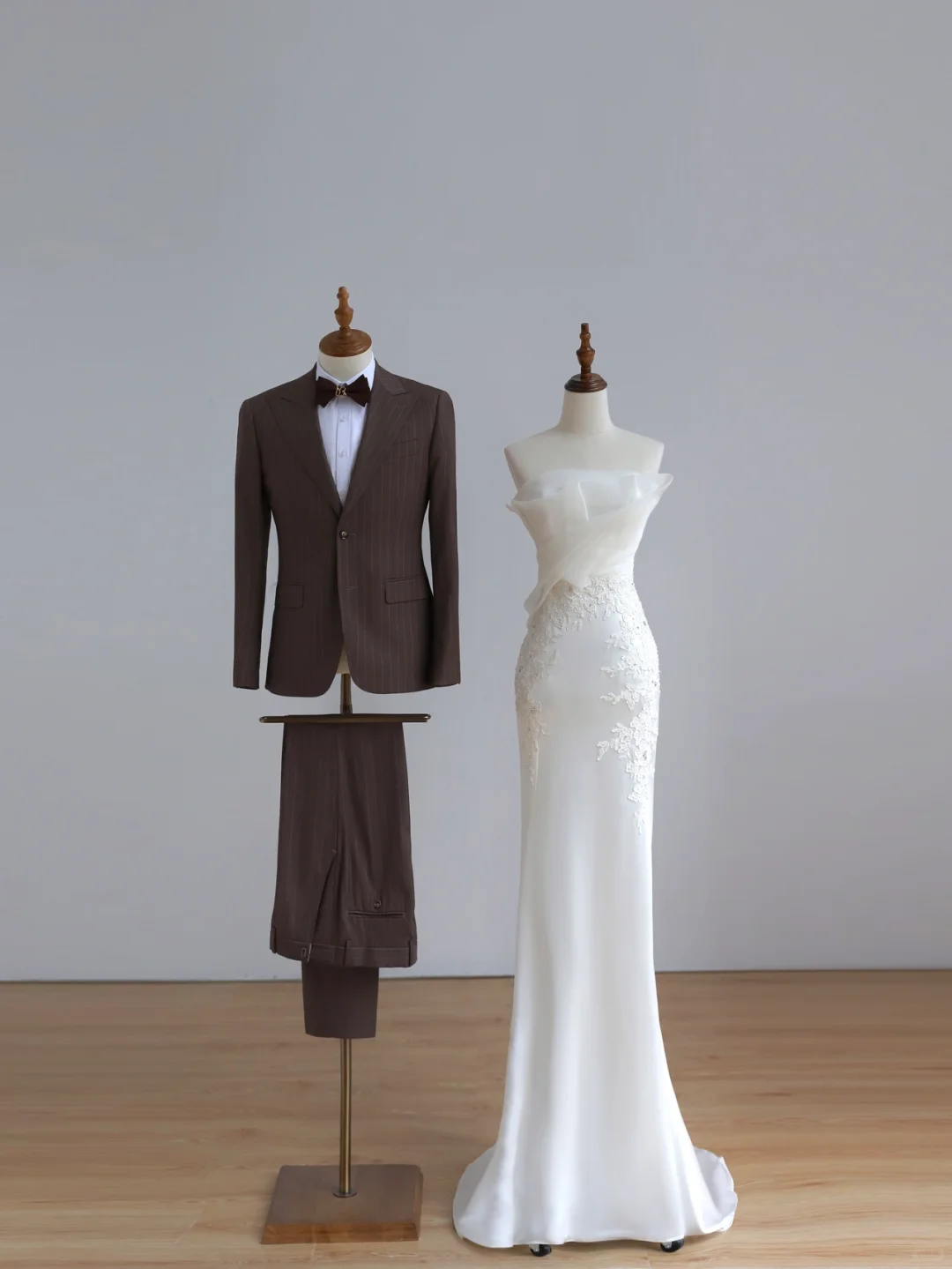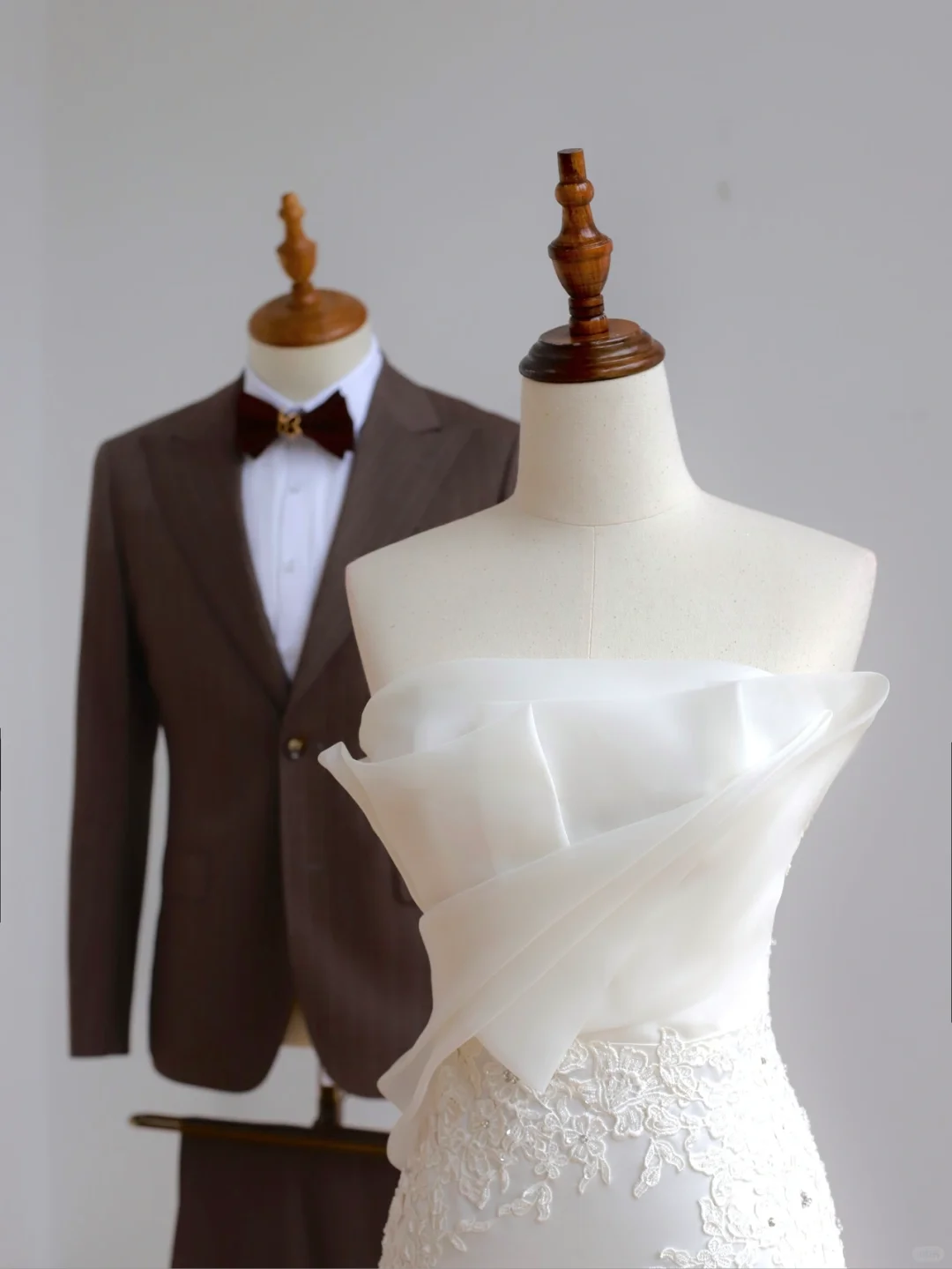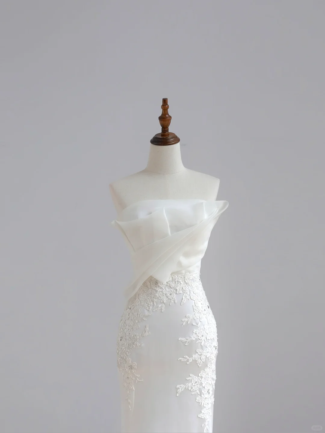 Simple Bridal Gown Mermaid Strapless Satin White Wedding Dresses Minimalist Bridal Gowns DP1513
