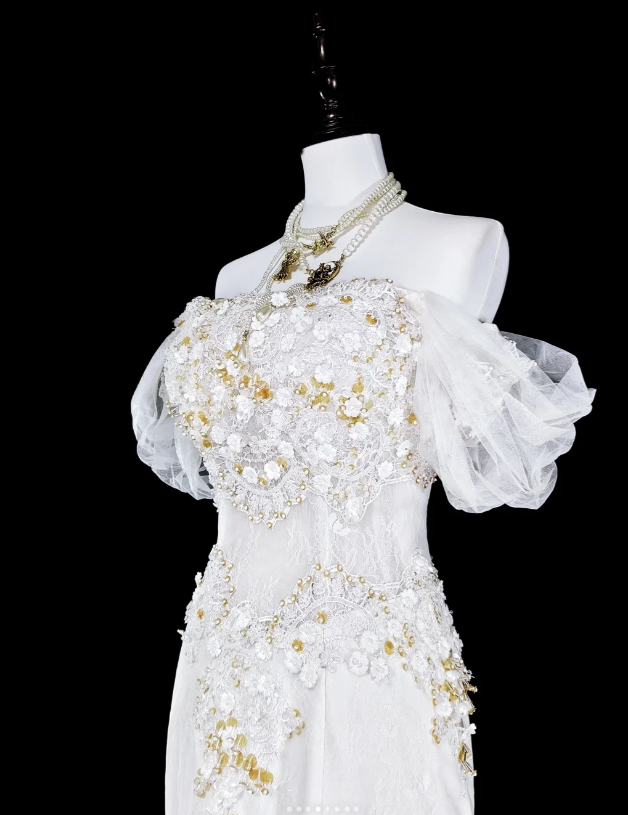 Chic Mermaid Long Wedding Dresses Tulle Appliques White Bridal Gowns Off-shoulder Bridal Dresses DP04792