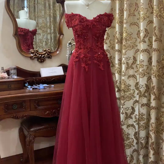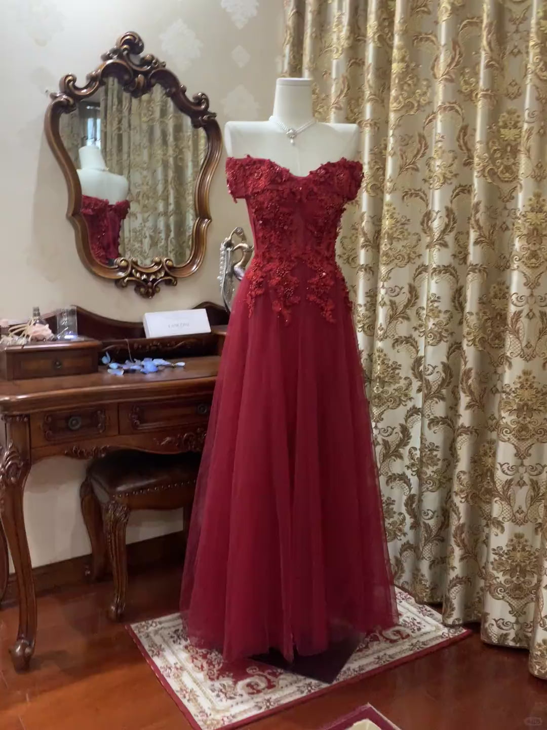 Classy A-Line Red Prom Dress Tulle Appliques Birthday Dress Sleeveless Long Evening Dress DP05100
