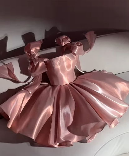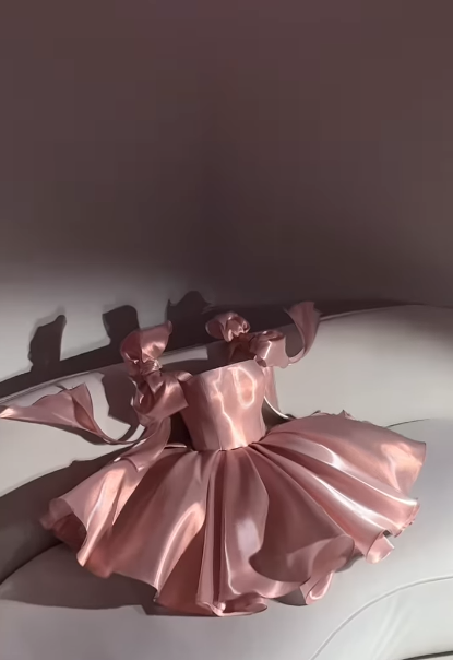 Cute Ball Gown Straps Pink Satin Short Formal 8th Grade Homecoming Dresses Middle School Cocktail Dress Hoco Outfits DH2591