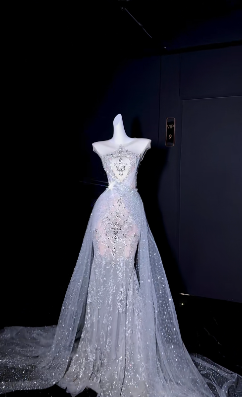 Elegant Mermaid Long Wedding Dress Tulle Jewel Beaded Bridal Gowns Sleeveless Bridal Dress DP04973
