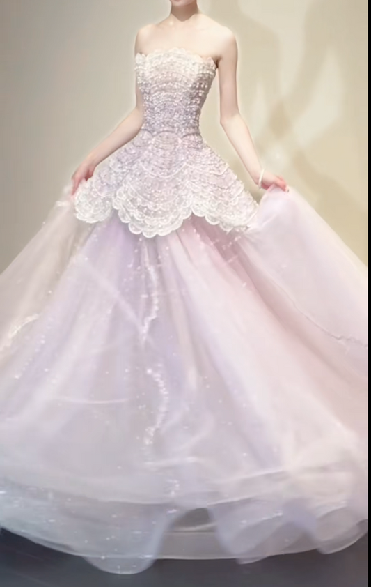 Cute Strapless Ball Gowns Light Pink Tulle Long Quinceanera Dress Formal Gowns Vestido De 15 Anos Sweet 16 Dress DP3243