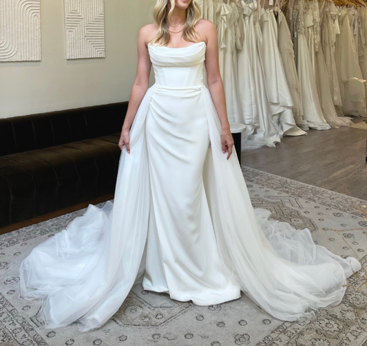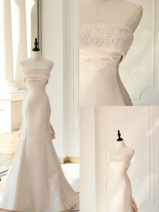 Classic Bridal Gown Mermaid Strapless Satin White Wedding Dresses Minimalist Bridal Gowns DP1656