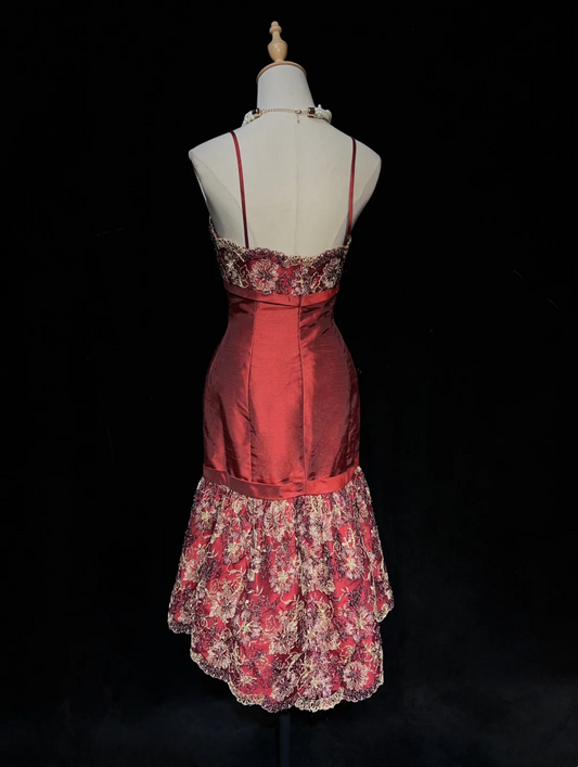 Trendy Mermaid Spaghetti Straps Rust Red Lace Short Formal 8th Grade Homecoming Dresses Middle School Prom Dress Hoco Outfits DH1437