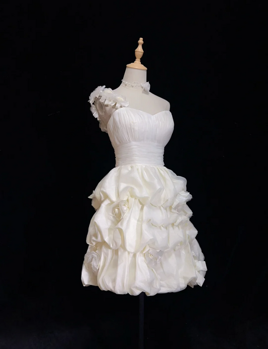 Unique Ball Gown One Shoulder White Organza Short Mini Formal 7th Grade Homecoming Dresses Middle School Short Cocktail Night Dress Hoco Outfits DH1441