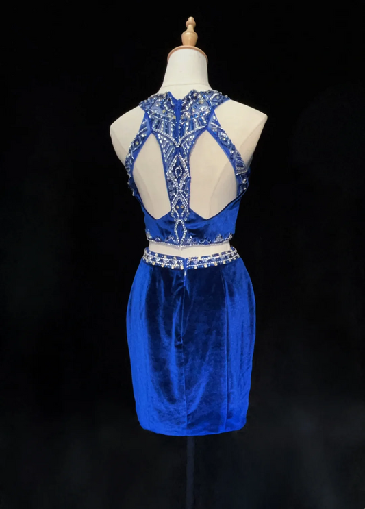 Unique Sheath 2 Pieces Royal Blue Velvet Short Mini Formal 7th Grade Homecoming Dresses Middle School Short Cocktail Night Dress Hoco Outfits DH1447