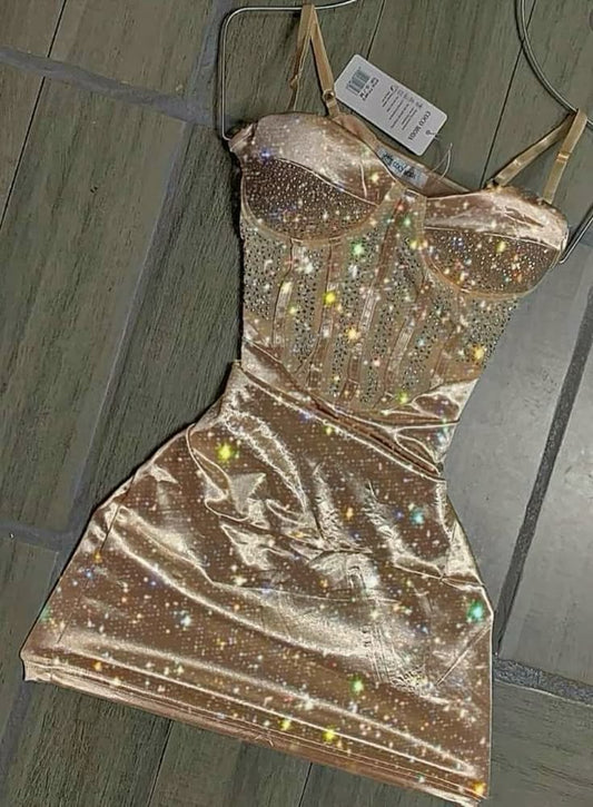 Unique Sheath Spaghetti Straps Champagne Sequin Formal Tight Homecoming Dresses High School Graduation Dress Short Hoco Dresses DH2696