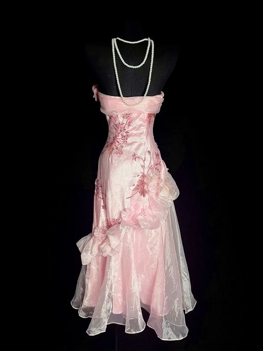 Unique Sheath Strapless Pink Tea Length Formal 7th Grade Homecoming Dresses Middle School Mid Length Prom Dress Hoco Outfits DH1318