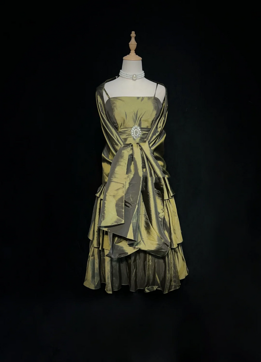 Vintage Ball Gown Spaghetti Straps Olive Green Taffeta Knee Length Formal 8th Grade Homecoming Dresses Middle School Prom Dress Hoco Outfits DH1442