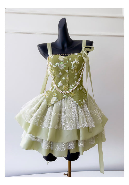 Vintage Ball Gown Spaghetti Straps Chiffon Green Summer 18th Birthday Dress Green Short Lolita Dress 18th Birthday Outfits DH2433