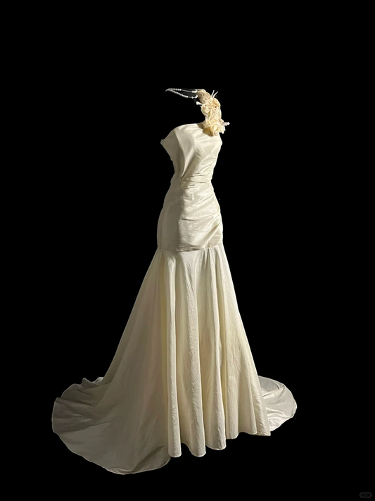 Vintage Bridal Gown Mermaid One Shoulder Ivory Long Wedding Dresses Minimalist Bridal Gowns DP918