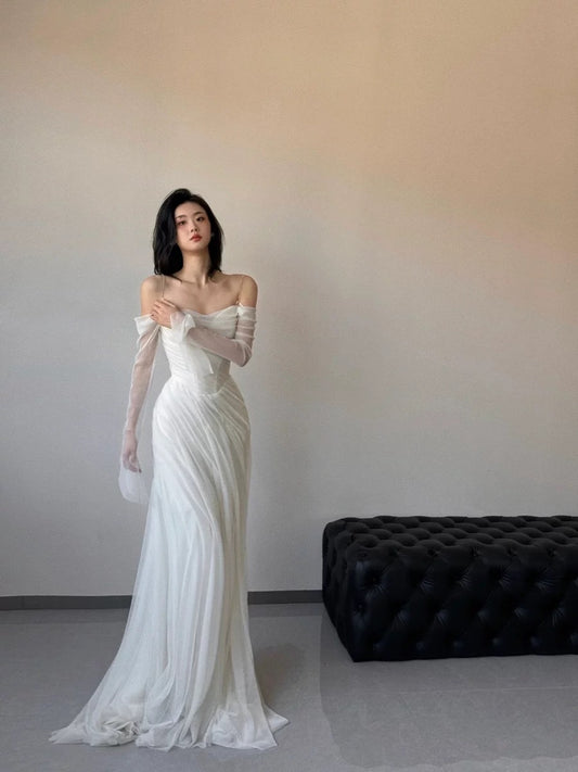 Vintage Wedding Dress Sheath Off The Shoulder Long Sleeves White Summer Beach Long Sleeves Wedding Dresses Bridal Gowns W0769