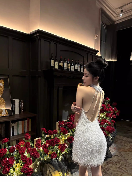 Classy Sheath High Neck White Sequin Short Mini Formal 8th Grade Homecoming Dresses Middle School Hoco Court Dress 21st Birthday Dress Hoco Outfits DH1883