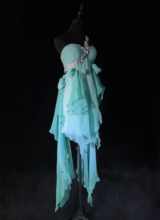 Cute A line One Shoulder Green Chiffon Short Summer Dress Holiday Party Birthday Outfits DP0147