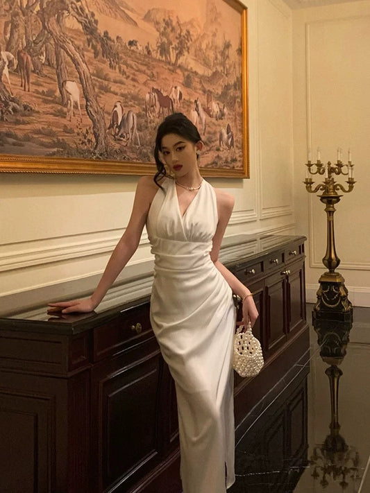 Sexy Sheath Halter White Sleeveless Prom Dresses Party Dress Summer Birthday Outfits Birthday Dresses W811
