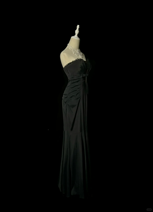 Retro Mermaid Strapless Black 20th Birthday Dress Long Prom Dress Birthday Outfits For Women DP2073