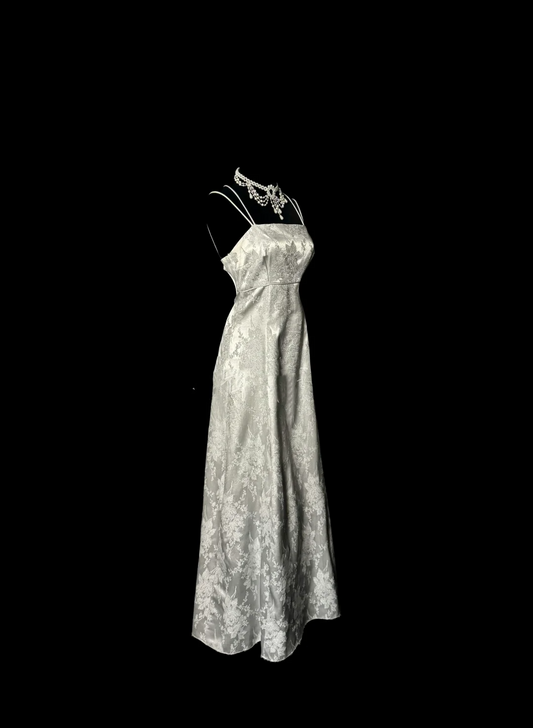 Retro Mermaid Spaghetti Straps Silver 20th Birthday Dress Long Prom Dress Birthday Outfits For Women DP2075