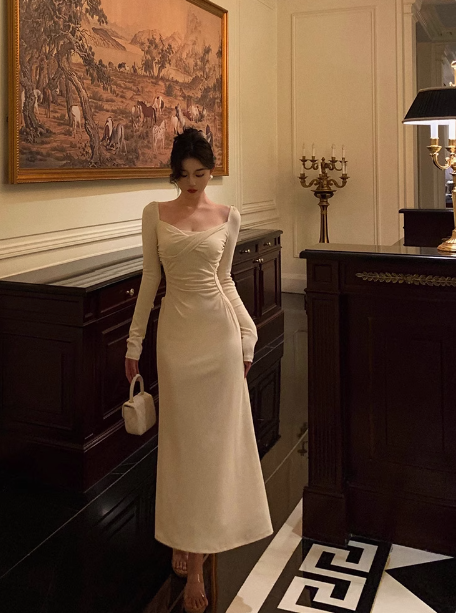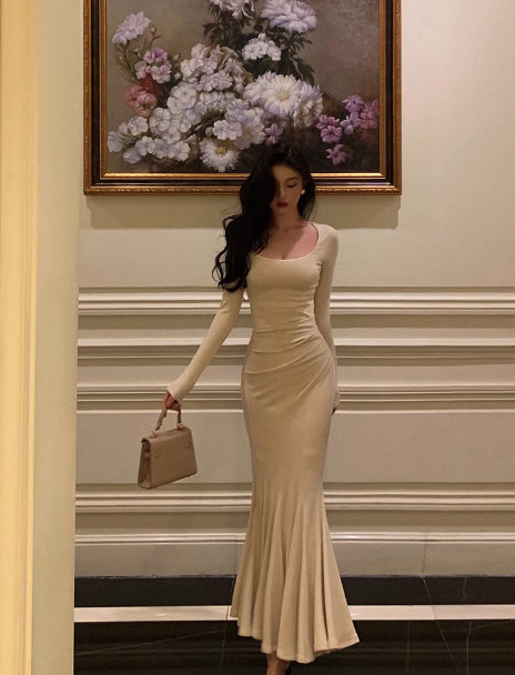 Sexy Mermaid Square Neck Long Sleeves 21st Birthday Dress Party Gown Birthday Outfits Birthday Dress Ideas For Women DP2314