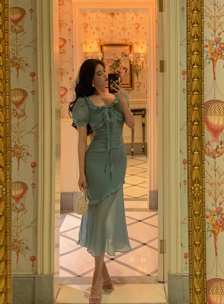 Sexy Mermaid Square Chiffon Blue 21st Birthday Dress Party Gown Birthday Outfits Birthday Dress Ideas For Women DP1881