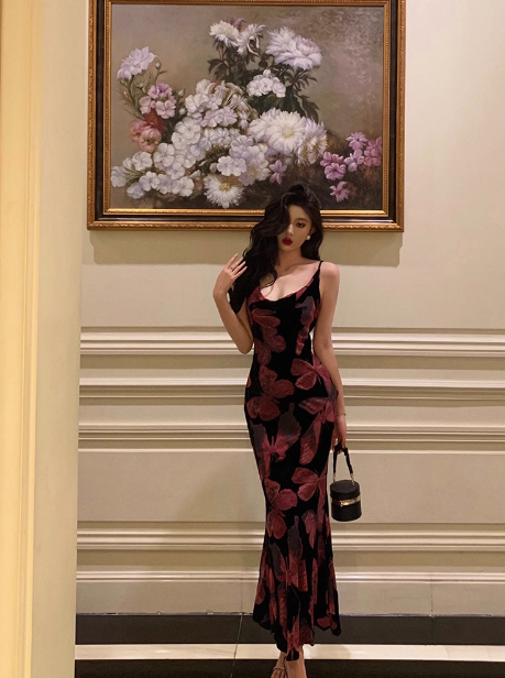 Classy Mermaid Spaghetti Straps Floral Chiffon Long 18th Birthday Dress Party Gown 21st Birthday Outfits Birthday Dress Ideas For Women DP1309