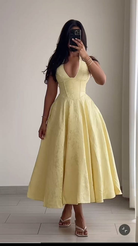 Cute Ball Gown Yellow Satin Long Birthday Dress Prom Dress Baddie Summer Birthday Outfit DP1012