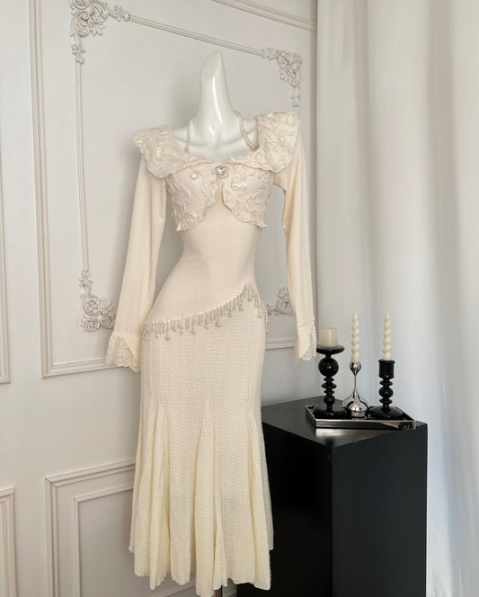 Sweet Mermaid Jewel Long Sleeves Long Women Summer Holiday Knitted Dresses DP0021