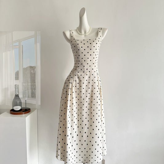 Sexy A line Square Neckline Pink Summer Polka Dots Dress Holiday Party Outfits For Women DP0110